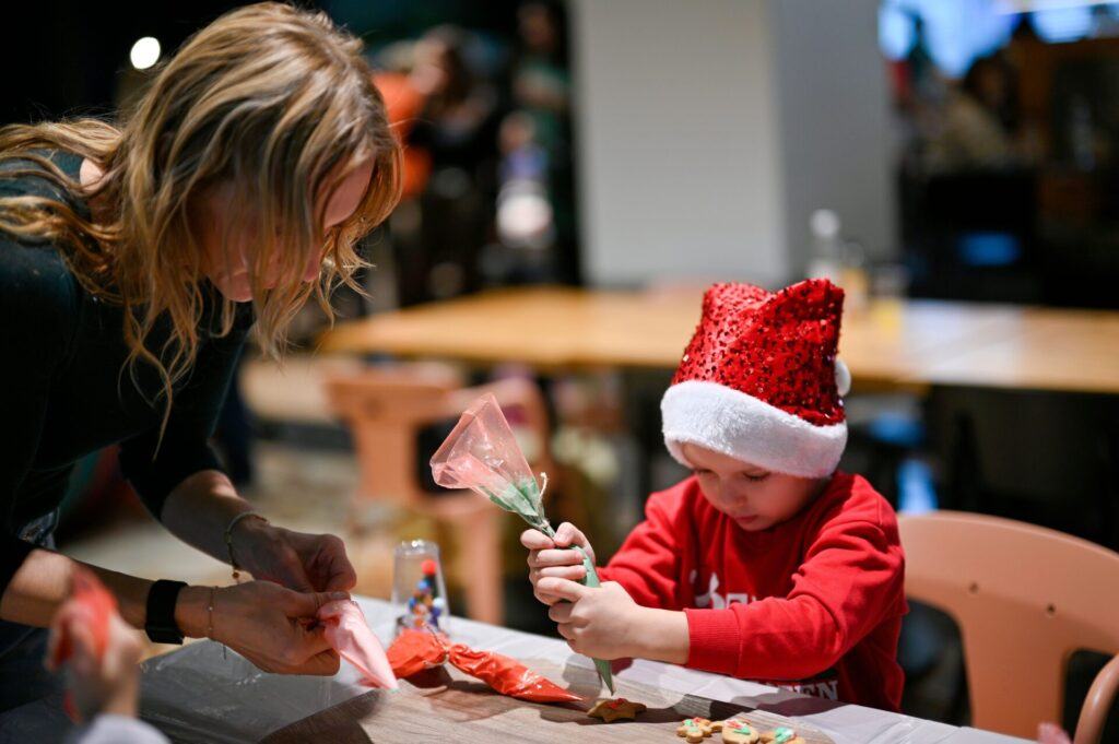 Děti i rodiče si společně užili pečení, zdobení a Ježíškovu dílnu, kde vznikala spousta krásných výrobků. Rodiče si mohli vytvořit svůj adventní věnec společně s naší skvělou floristkou Danielou, která byla rodině k dispozici a pomáhala jim doladit jejich věnec k úplné sokojenosti ❤️ Atmosféra byla hřejivá a radostná – přesně taková, jakou si v předvánočním čase přejeme.
