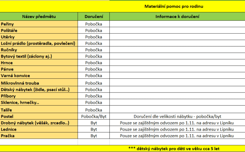 Materiální pomoc pro rodinu