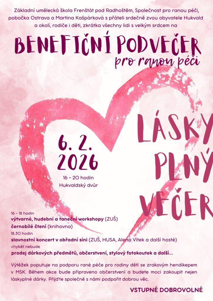 Základní umělecká škola Frenštát pod Radhoštěm, ostravská pobočka Společnosti pro ranou péči, Martina Kašpárková s přáteli srdečně zvou rodiče a děti, obyvatele Hukvald a okolí a všechny lidi s velkým srdcem na