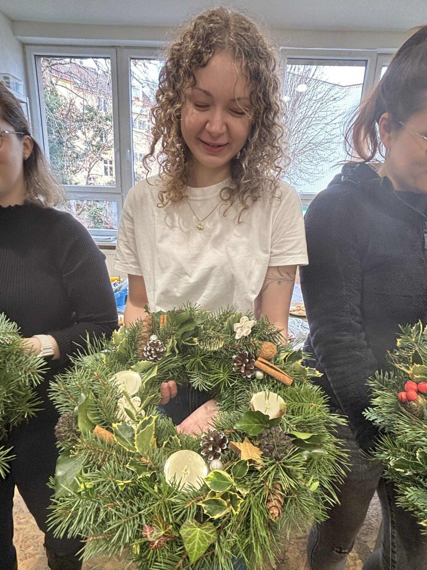Společně jsme si uvázali originální adventní věnce, zaposlouchali se do vánočních melodií a vychutnali si výborný punč i sladké dobroty, které s láskou napekly maminky. Každá z nich si domů odnesla nejen vlastnoručně vytvořený věnec, ale také radost z příjemně stráveného času a společného zastavení v adventním shonu.