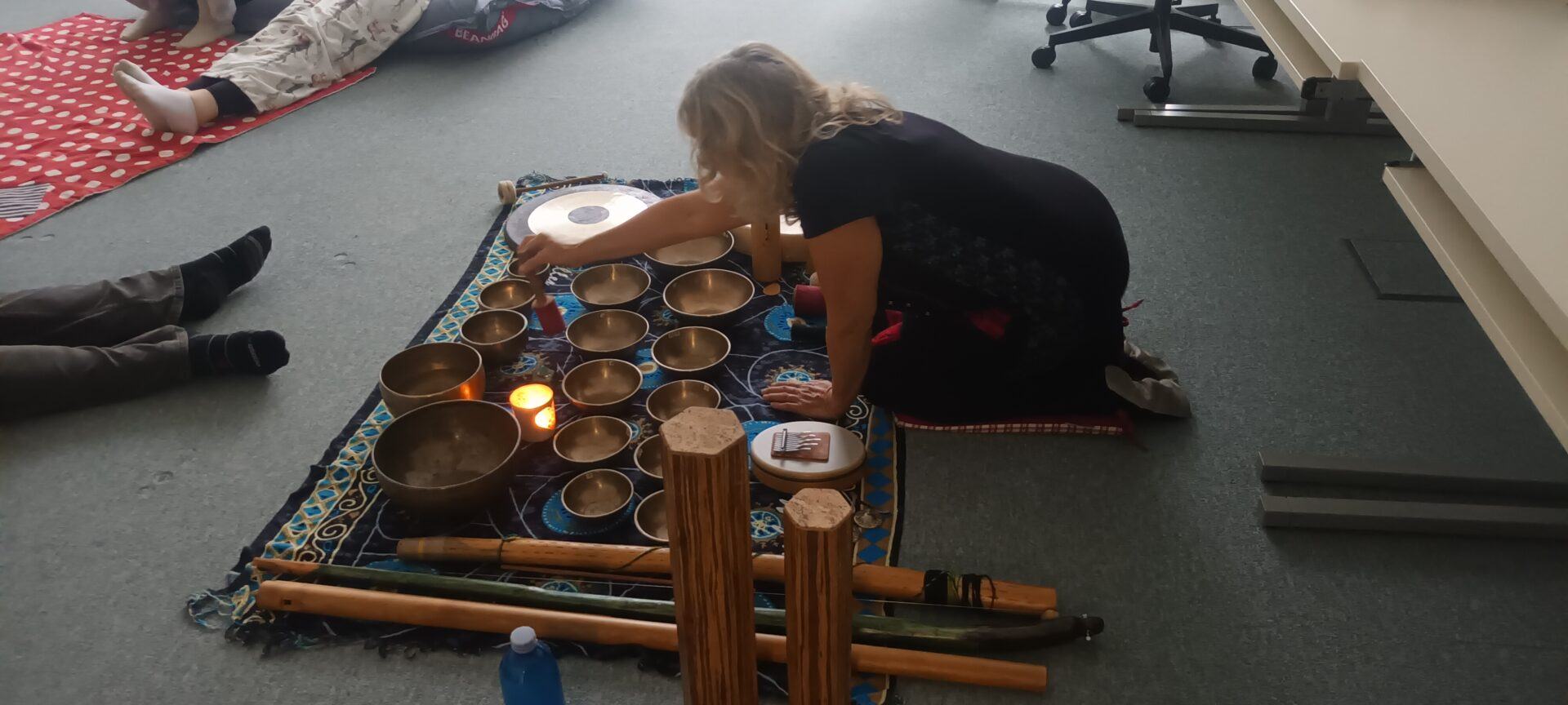 O hluboké relaxaci rodičů, o doplnění energie, o harmonii tónů a zpěvu muzikoterapeutky Evy Sádlíkové, o neobvyklých hudebních nástrojích.