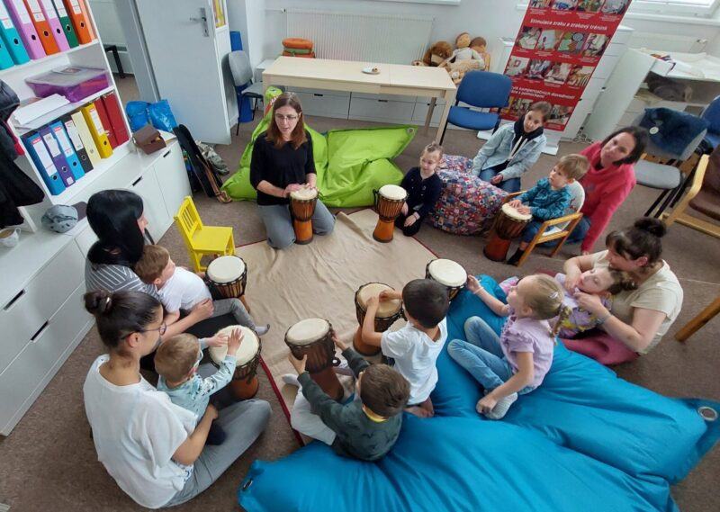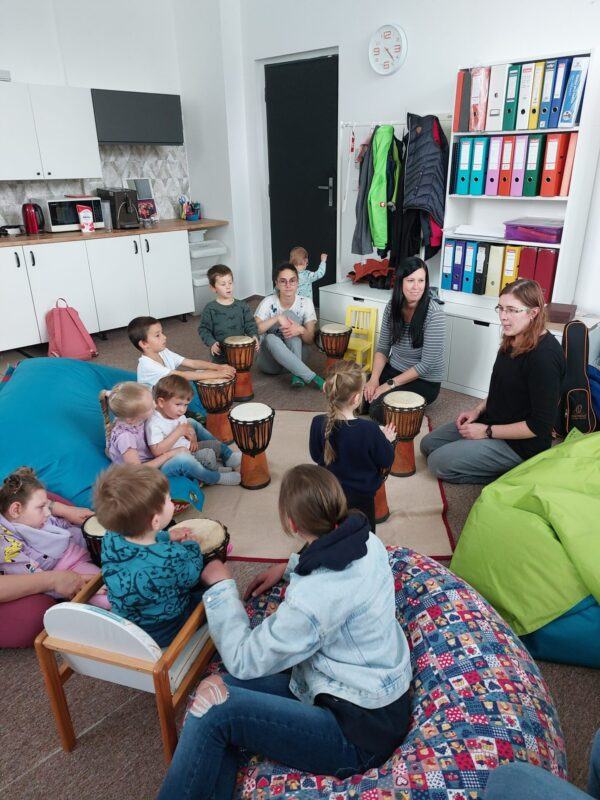 Setkání proběhlo v příjemné, uvolněné atmosféře. Děti si zkoušely různé rytmické i melodické nástroje, zpívalo se, tančilo a nechyběl ani smích a radost ze společně prožitého času. Hudba se stala prostředkem k navázání kontaktu, sdílení a posílení vztahů – nejen mezi dětmi, ale i mezi rodiči.