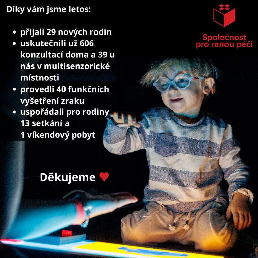 Děkujeme vám, milí dárci, za vaši přízeň. Podívejte se, jakou podporu jsme letos už dokázali dát 162 rodinám v naší péči. Bez vás bychom to nemohli zvládnout, děkujeme!